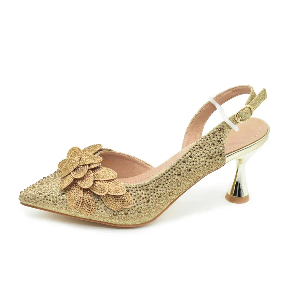 Make a striking entrance with this elegant Italian-inspired shoe and matching bag set, created for women who love luxury with confidence. These slingback pumps feature a sharp pointed toe, super-high spike heels, and shimmering crystal accents that instantly elevate any party or wedding look. Crafted with premium PU, rhinestones, and a stable rubber outsole, the design balances glamour with comfort and a true-to-size fit. The ankle buckle strap adds security and sophistication, while the subtle platform enhances height without sacrificing elegance. A bold, radiant statement for unforgettable occasions.